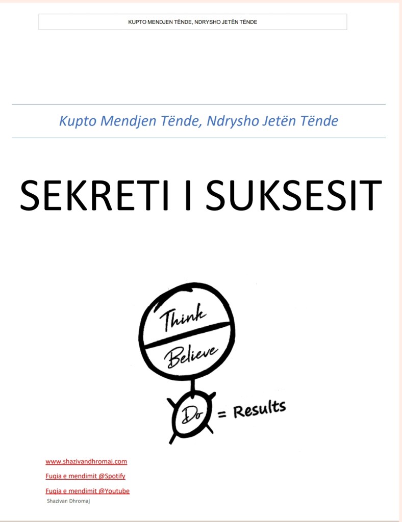 - 🌟 Shkenca e të Qenurit Madhështor(Sillu sikur je më i miri) Një nga librat më të fuqishëm mbi mendësinë dhe lidershipin Në fillim të shekullit XX, shkrimtari amerikan Wallace D. Wattles botoi disa libra që më vonë do të frymëzonin breza të tërë mendimtarësh, sipërmarrësish dhe liderësh. Një prej tyre është libri klasik “The Science of Being Great” – që… Read more: 🌟 Shkenca e të Qenurit Madhështor